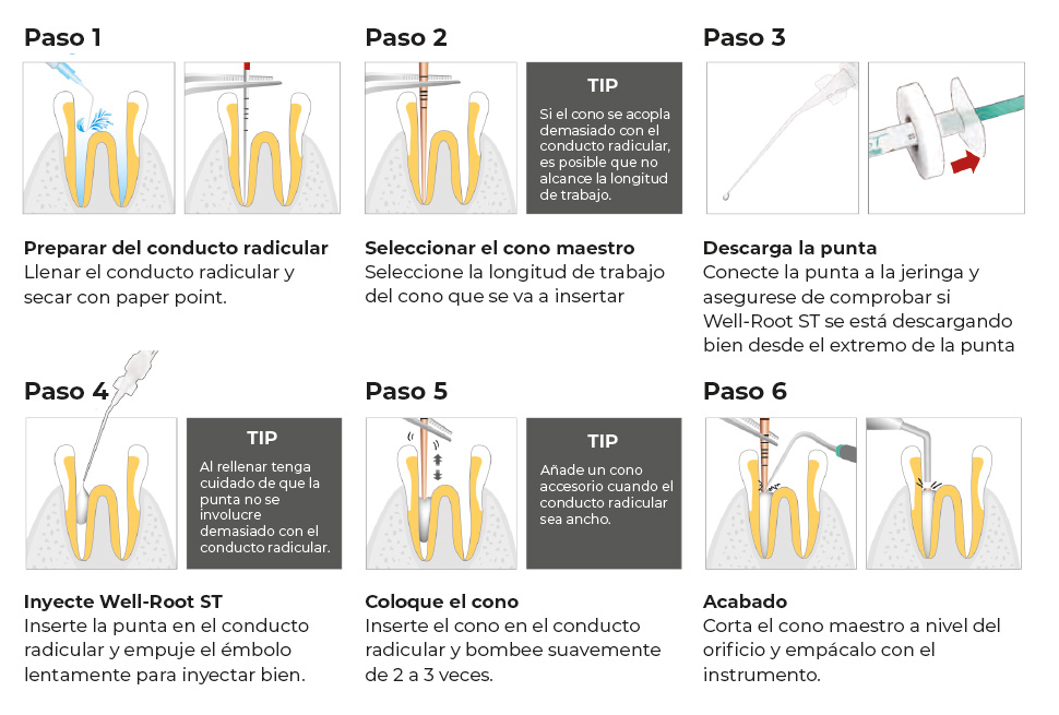 Well-Root ST es un sellador biocerámico premezclado, compuesto de una pasta de aluminosilicato de calcio inyectable, diseñado para proporcionar una excelente capacidad de sellado en conductos radiculares. Al curar, los iones de calcio reaccionan con los iones de fosfato en el líquido corporal, formando una interfaz de hidroxiapatita (HA) que asegura un sellado hermético y duradero.