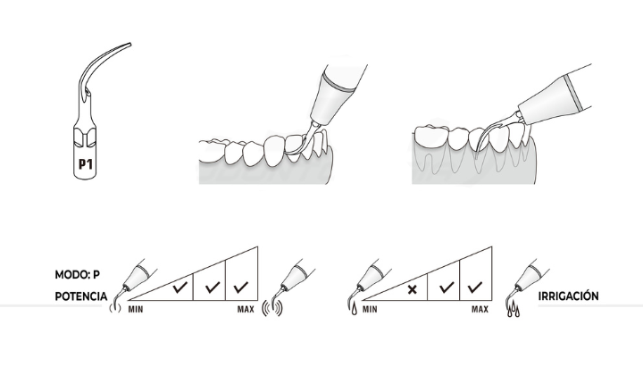Fino y puntiagudo, recomendado para limpieza e irrigación de depósitos subgingivales.